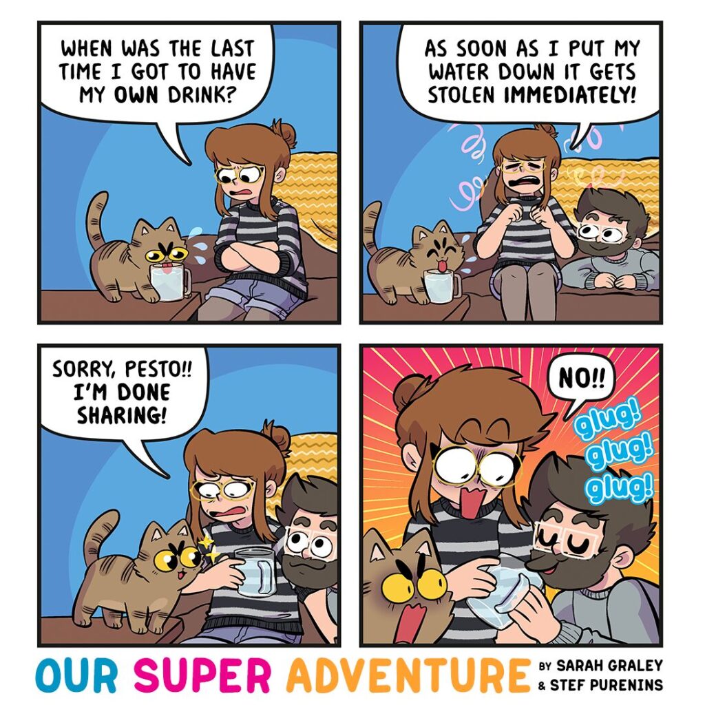 Water thief! Do you share your water with your pets? 🙃 Psst! We’re at Brighton Illustration Fair this weekend! Come say hi! ✏️ Double Psst! Portrait slots are now open for November! 🖼️