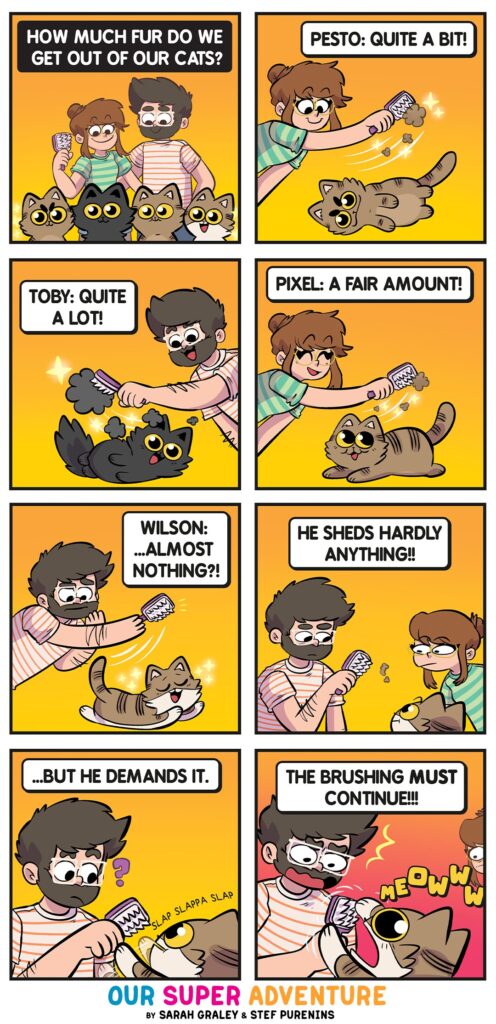 How much fur do we get out of our cats? All of our cats love being brushed but one of them loves it more than the others!